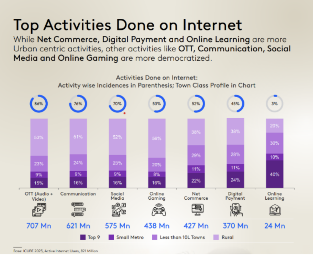 In addition to OTT, the subsequent spot is taken by the communications and social media as they rank second and third hottest on-line actions engaged in by Indians.