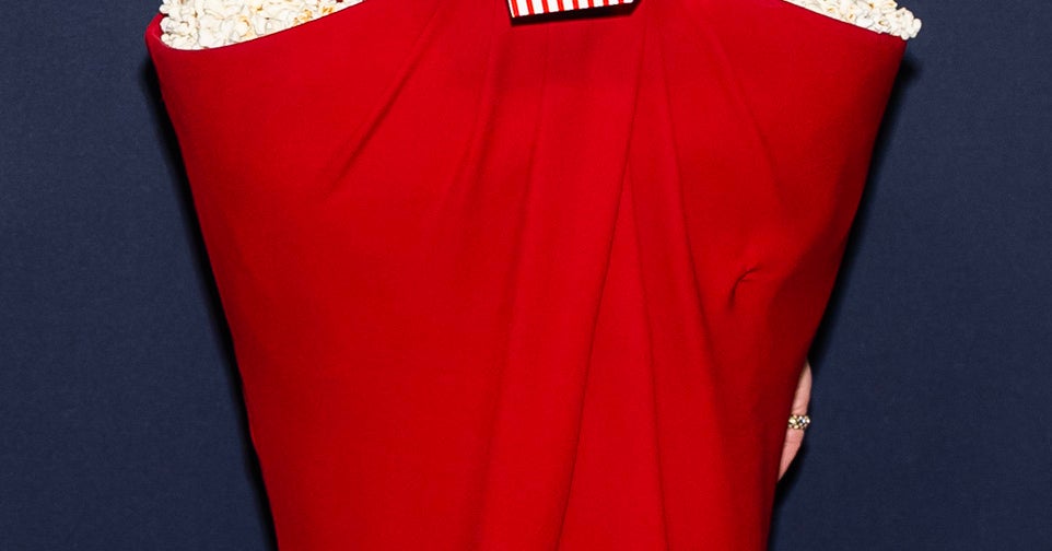 She walked the purple carpet in what can solely be described as “popcorn couture.”